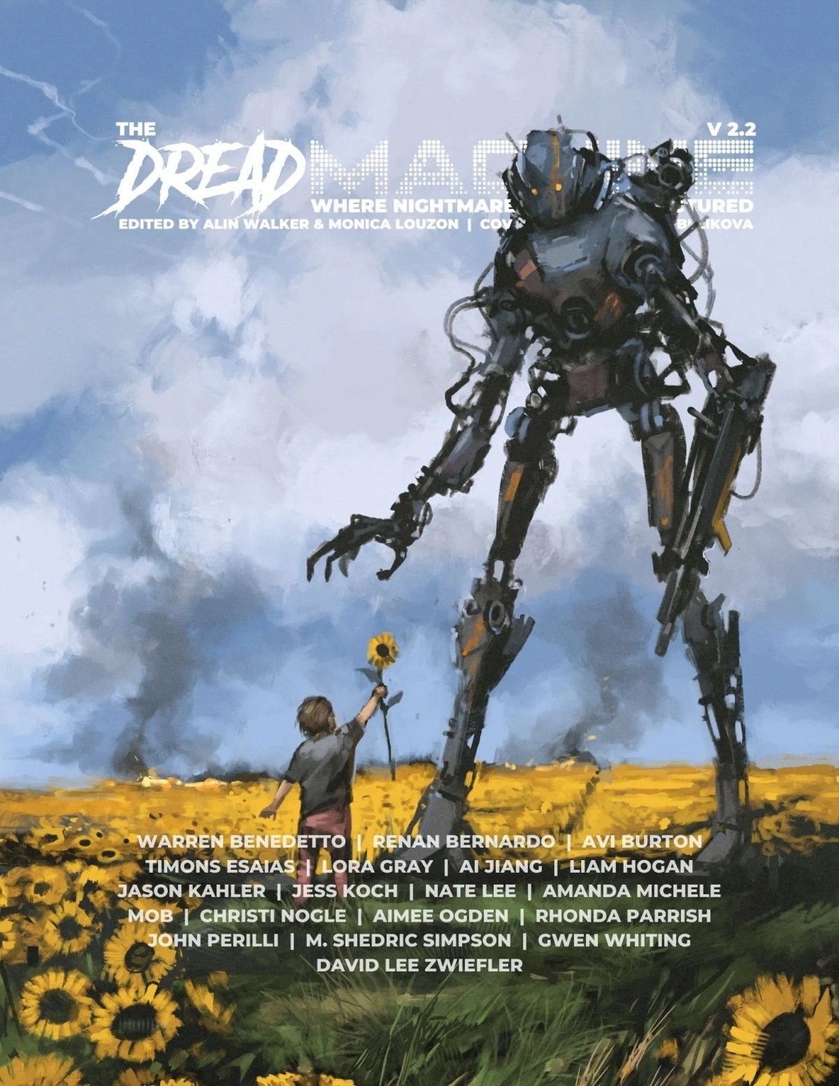 Issue 2.2 of The Dread Machine (featuring my techno-horror story Blame) is now available for pre-order for only $10.00. The incredible cover art is by one of my favorite artists, Katerina Belikova (aka NinjaJo). She also did the artwork for my story Set For Life in Dark Matter Magazine 004. I am so psyched to be part of this issue, with such a great group of talented writers.