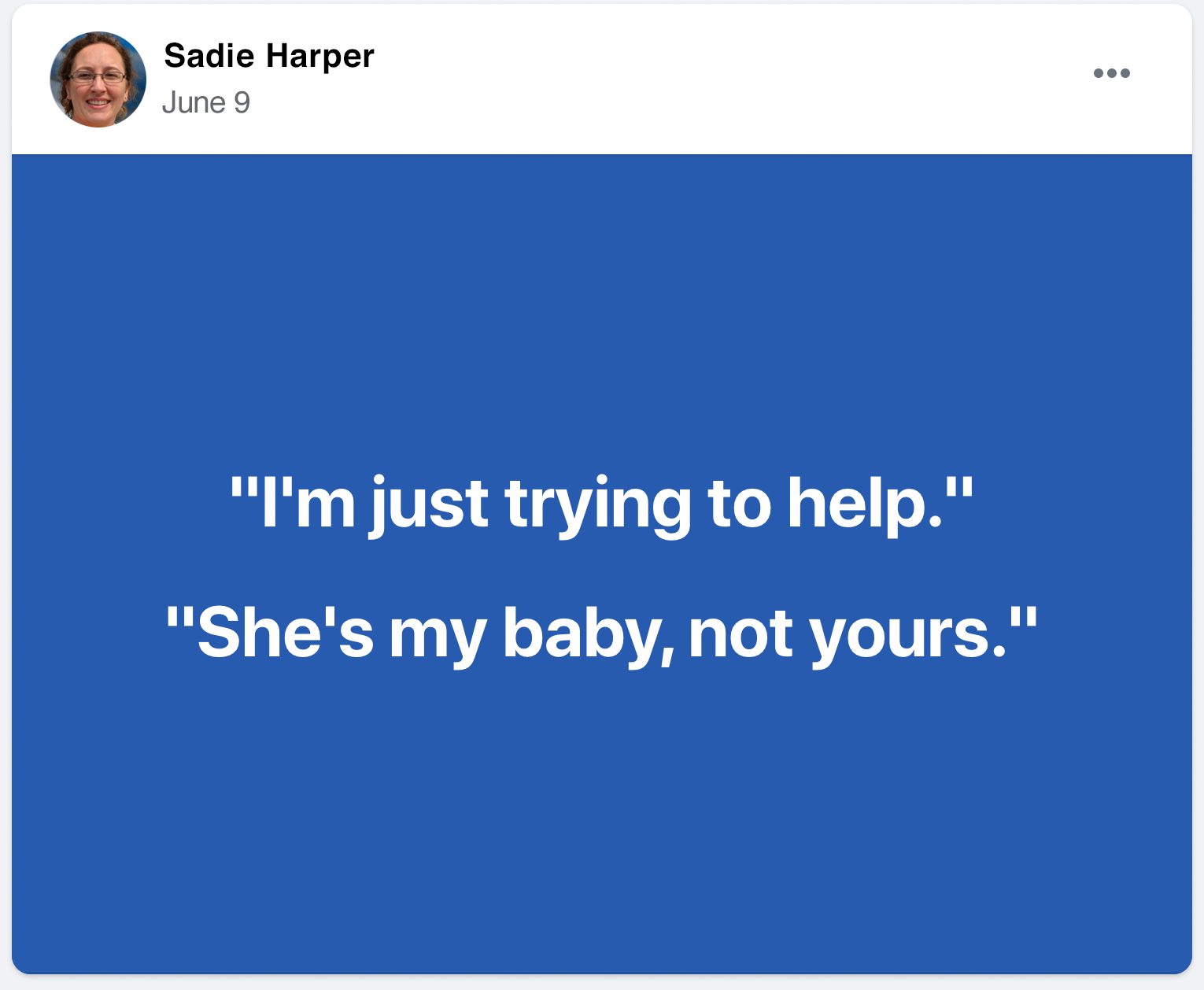 This story is written as a series of Facebook posts. Click through the gallery below to read.