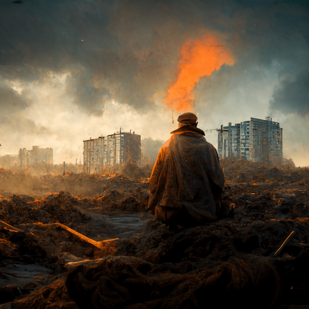 The last man on Earth leaned on his shovel, then wiped the sweat from his face.